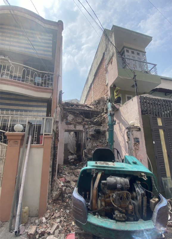 Khi một căn nhà được tháo dỡ, hệ kết cấu liên kết ngang bị mất đi, làm thay đổi trạng thái chịu lực của nhà bên cạnh.